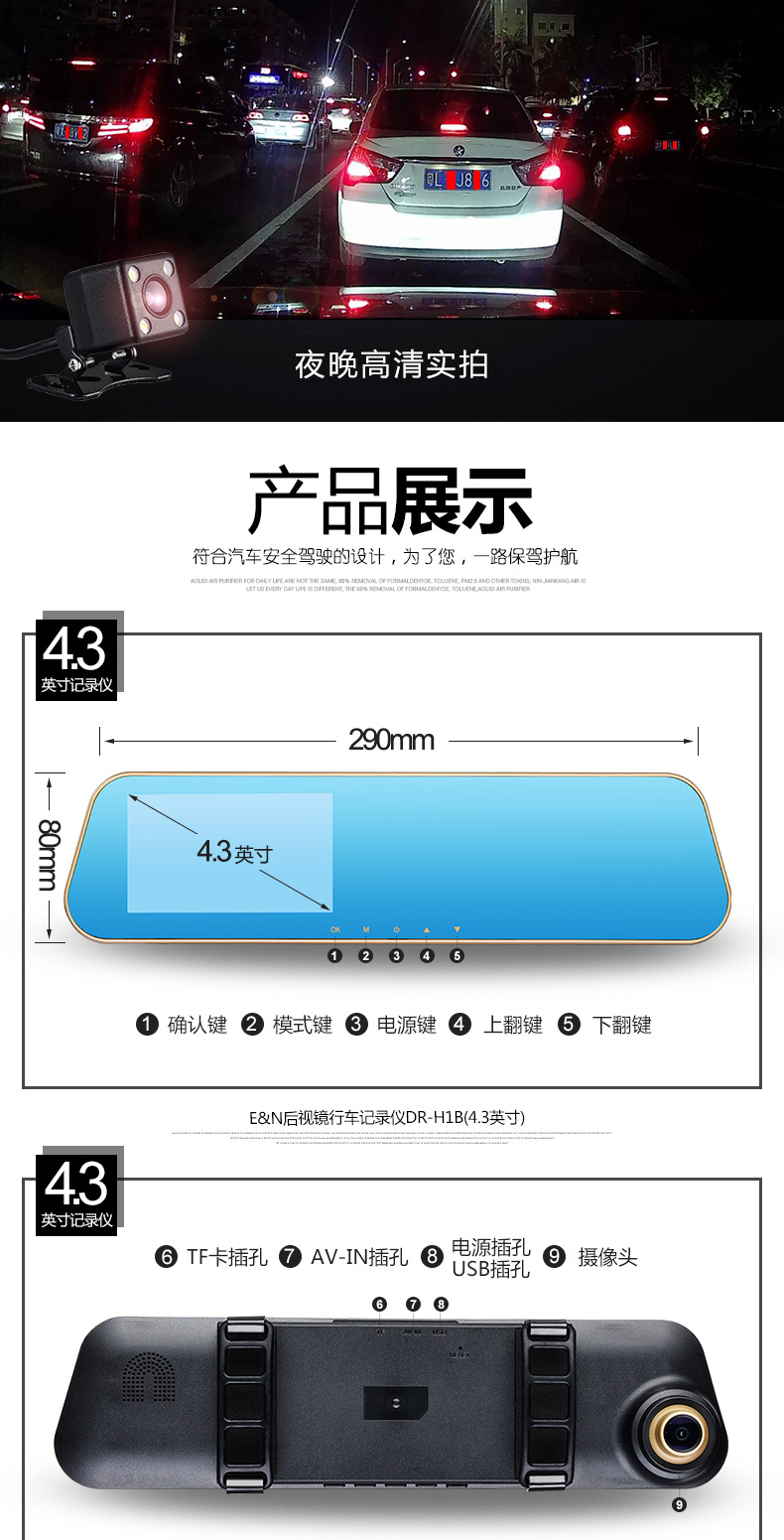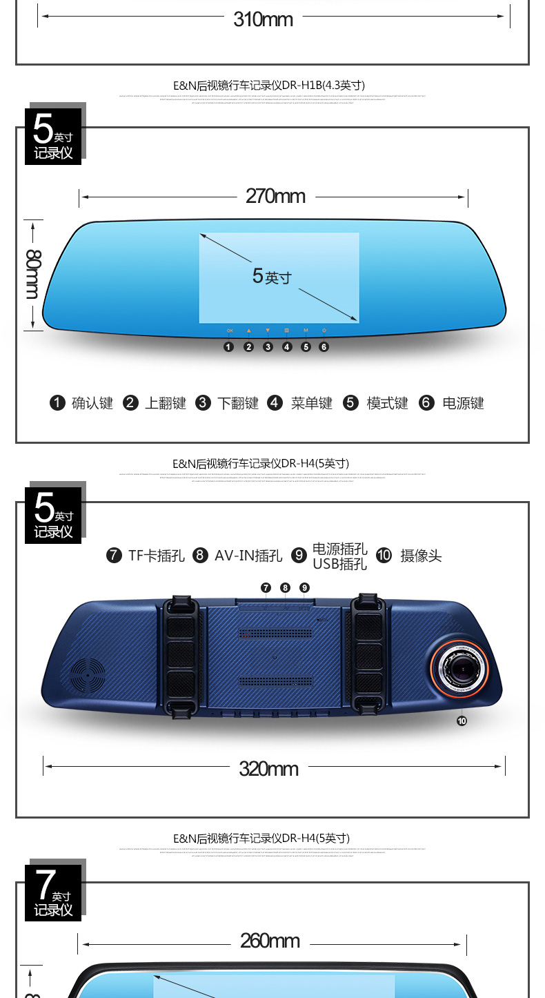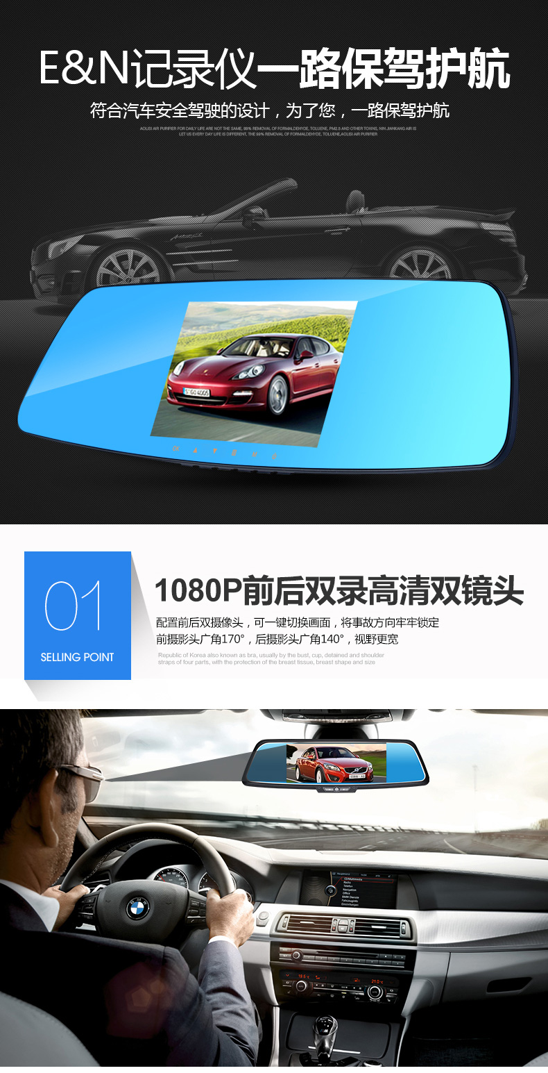 功能: 循環錄像、碰撞保護、停車監控、大屏觸控功能、手動鎖存、一鍵拍照