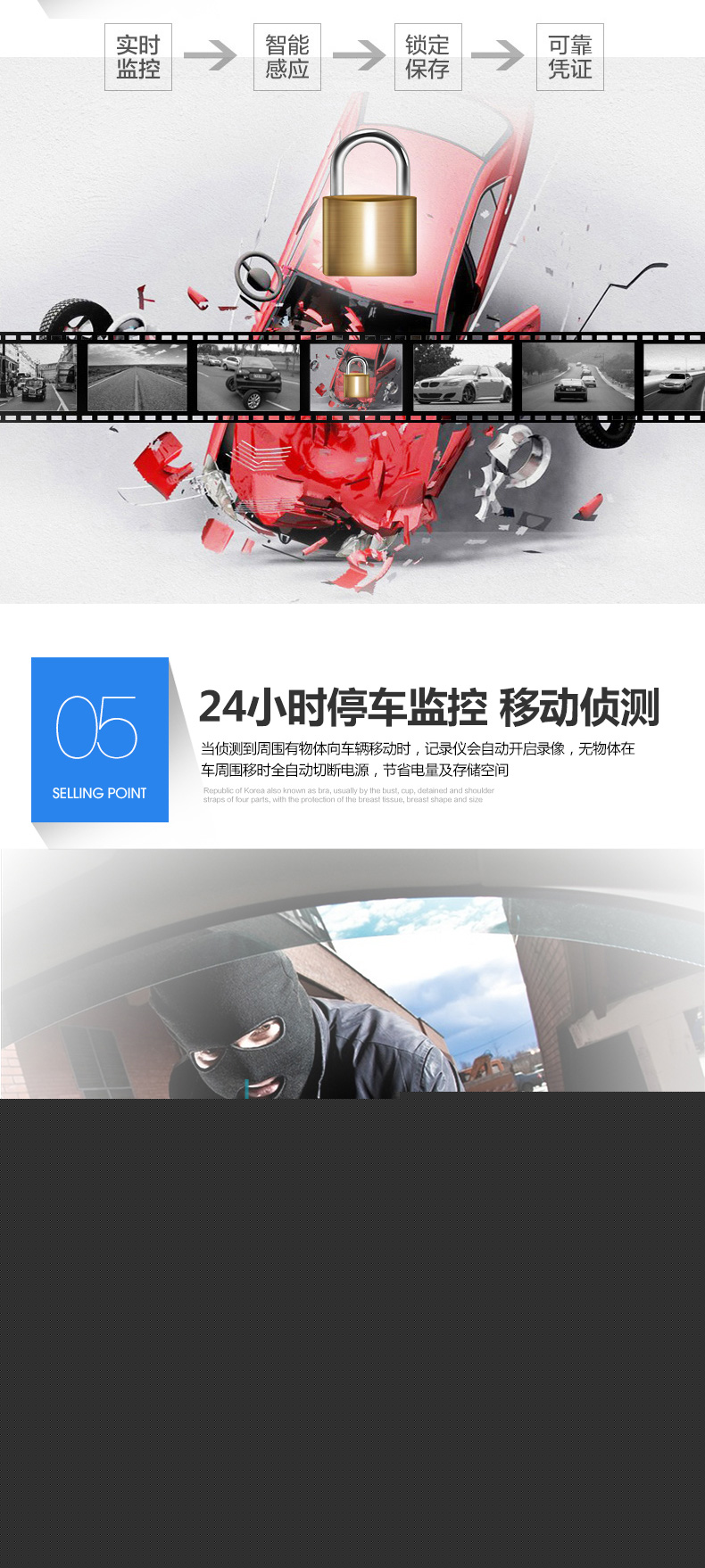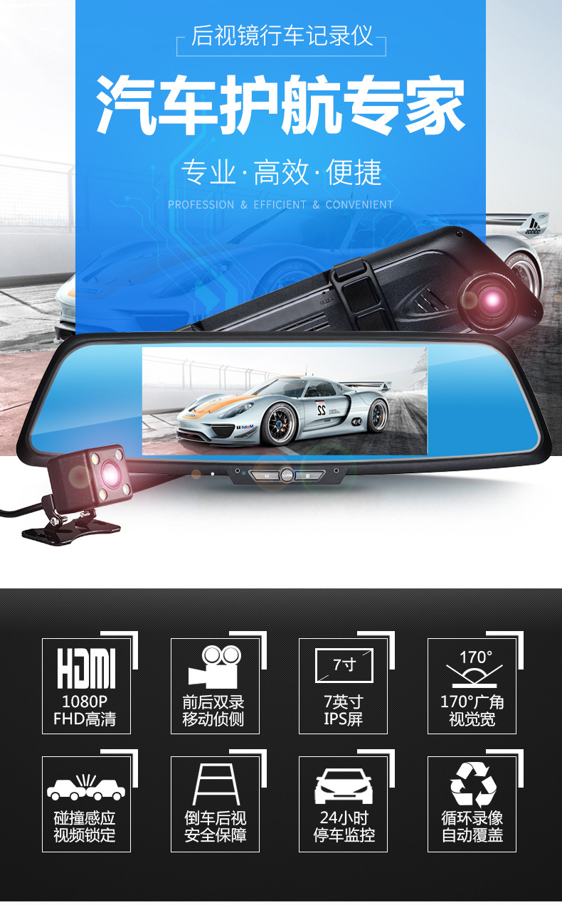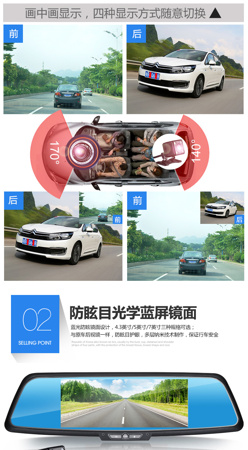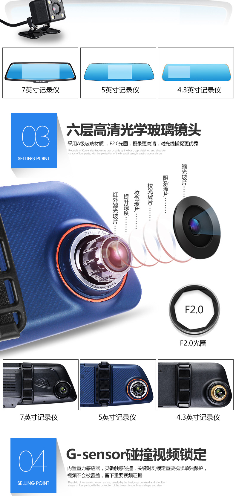 功能: 循環錄像、碰撞保護、停車監控、大屏觸控功能、手動鎖存、一鍵拍照